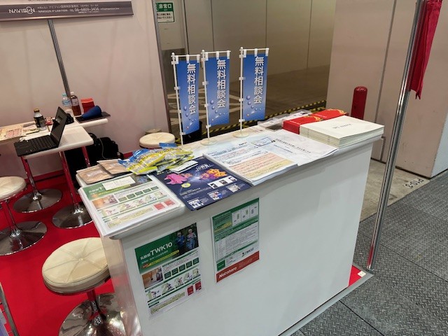 当日は、ノベルティとしてナビジョンカラーのトートバッグをお配りしたほか、弊所クライアント企業のサンプル品も展示し、多くの皆様にご覧いただくことができました。